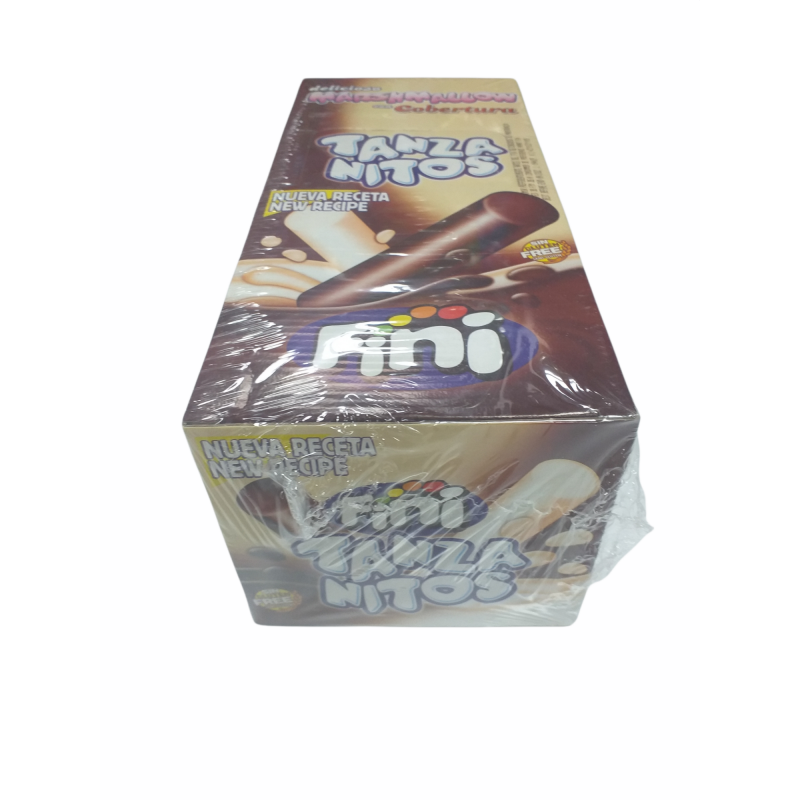 Schachtel mit 150Uds. Schwämme mit Schokolade mit cremefarbenem Geschmack und Schokolade der Marke Fini. Glutenfrei.