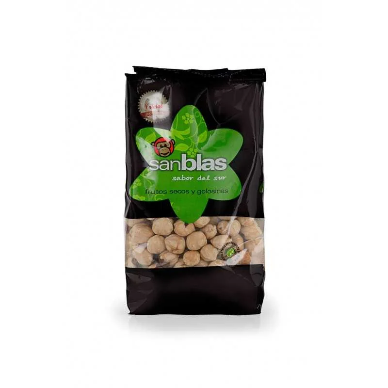 Gegrillte und Frutos Secos San Blas verpackte Haselnüsse in verschiedenen Formaten: Beutel 200grs, 500grs, 1kg, 3kg, Würfel 2kg und 30kg Tasche.