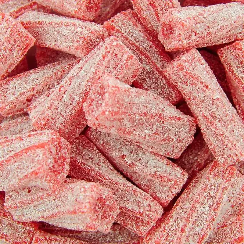 Bolsa de 250Uds. de delicioso regaliz tipo torcida relleno de fresa y recubierto de azúcar pica cortado en tacos del fabricante FINI. Ideal para mesas dulces para fiestas infantiles, bodas, bautizos, comuniones o simplemente darse un gustazo.