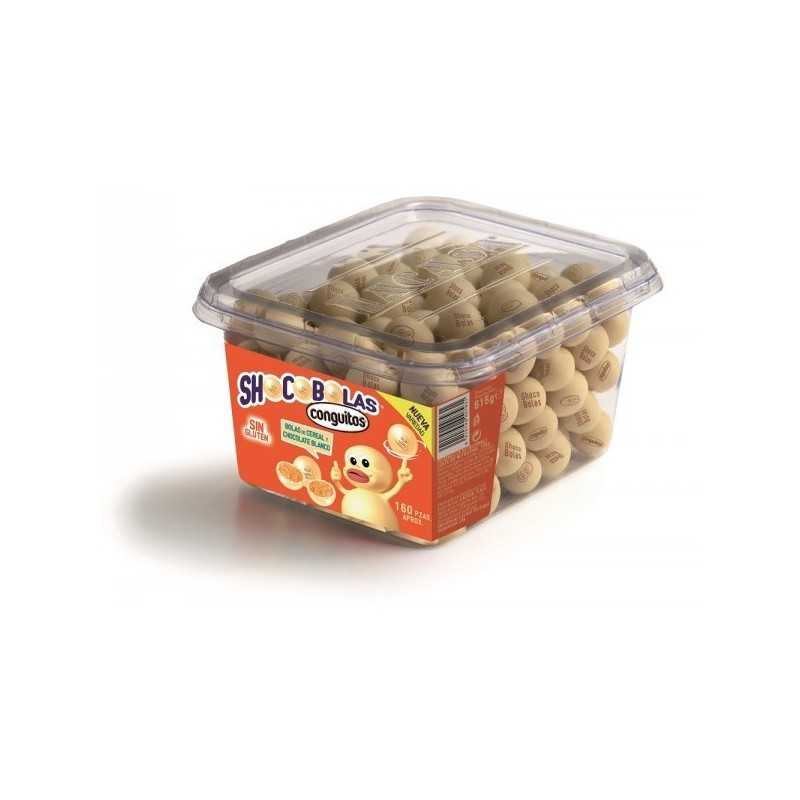 Pot de 160 boules de céréales enrobées de chocolat blanc appelé shocobola blanc fabriqué par LACASA.