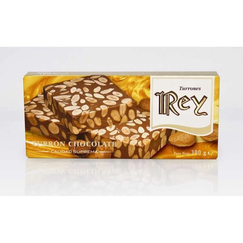 Tablette de nougat d'amandes et chocolats de 250grs. fabricant de l'estrémadure Nougat Roi. Réalisée avec les meilleures amandes.