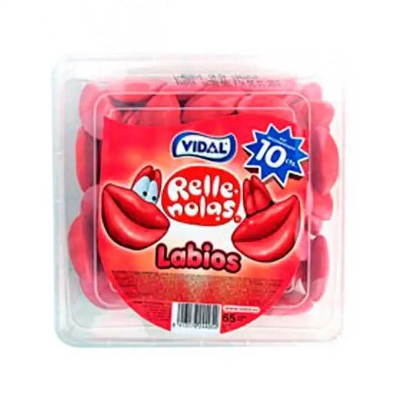 Caixa de 75 unidades de goma preenchida na forma de lábios da marca e fabricante murciano Vidal.